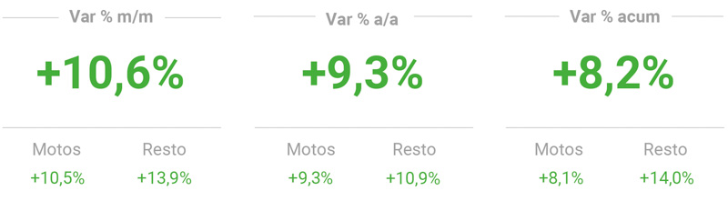 De acuerdo a los registros de ACARA (Asociación de Concesionarios de Automotores de la República Argentina), durante julio se patentaron 37.433 motovehículos en el país, 10,6% más que en junio y 9,3% más que en julio de 2022.