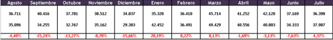 En el acumulado anual, siempre según la entidad que nuclea a los concesionarios automotores, los primeros siete meses suman 276.639 unidades, 8,2% más que en los mismos meses del año pasado.