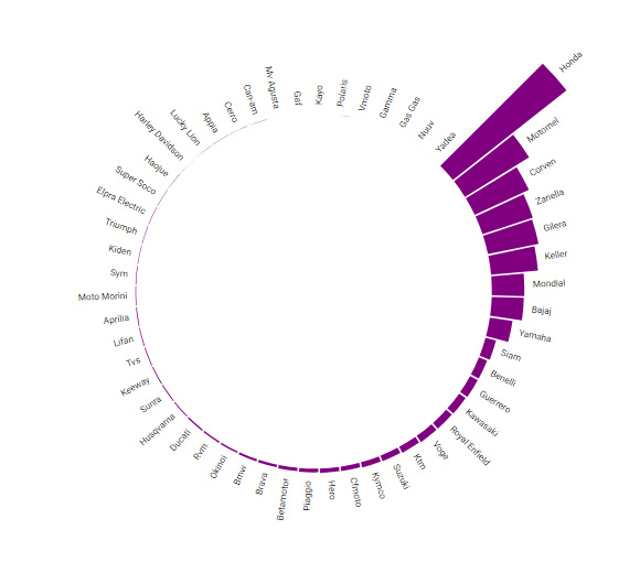 Las motos de baja cilindrada continúan siendo las más vendidas: con 15.839 unidades patentadas de 110 cc y 4.699 de 150 cc. Y en relación a las categorías, lidera el ranking de las más vendidas del mes: las CUB con 18.405 unidades, seguidas por las STREET con 7.825 unidades.