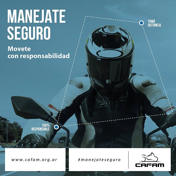 Lanzada por CAFAM, la cámara que nuclea las principales terminales de motovehículos del país, sobre seguridad de la moto y conducción responsable. Difunde los beneficios de la moto, como transporte seguro que evita la propagación del COVID-19, gracias a sus características, se viaja solo, y aislado; y el uso del casco, guantes y vestimenta específica dificultan el contacto directo con objetos y personas.