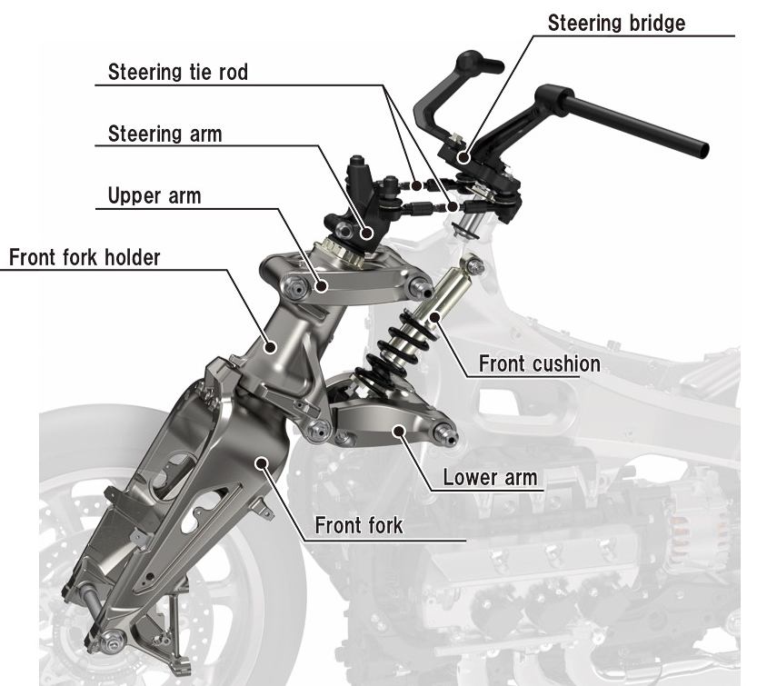 Honda está llevando adelante la idea de usar en nuevos modelos, al sistema de suspensión delantera "Hossack" de las Gold Wing.