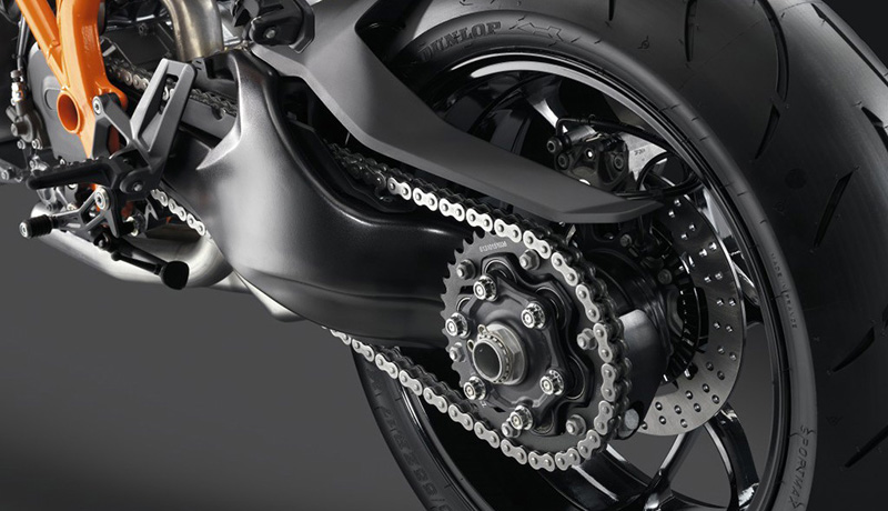 La principal bondad de la cadena es su eficacia a la hora de aplicar toda la potencia y se la utiliza mucho en motos deportivas, competición y offroad.