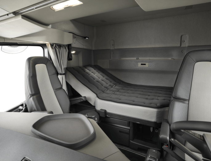 Como suele suceder en la firma escandinava, todo fue pensado al detalle, no dejando nada librado al azar: el colchón de la nueva cama utiliza la tecnología S-Touch, que integra una almohada de espuma de poliéster y aporta un mayor confort. También se agregaron refuerzos adicionales en el pilar C y se garantiza que la cabina sea totalmente sólida y cumpla con las más estrictas normas de seguridad de la SwedishCabStrenght Test (prueba de resistencia de cabinas de Suecia) impulsada por Volvo y de la EuropeanCabStrength ECE R29-03, que incluyen simulaciones de vuelco.