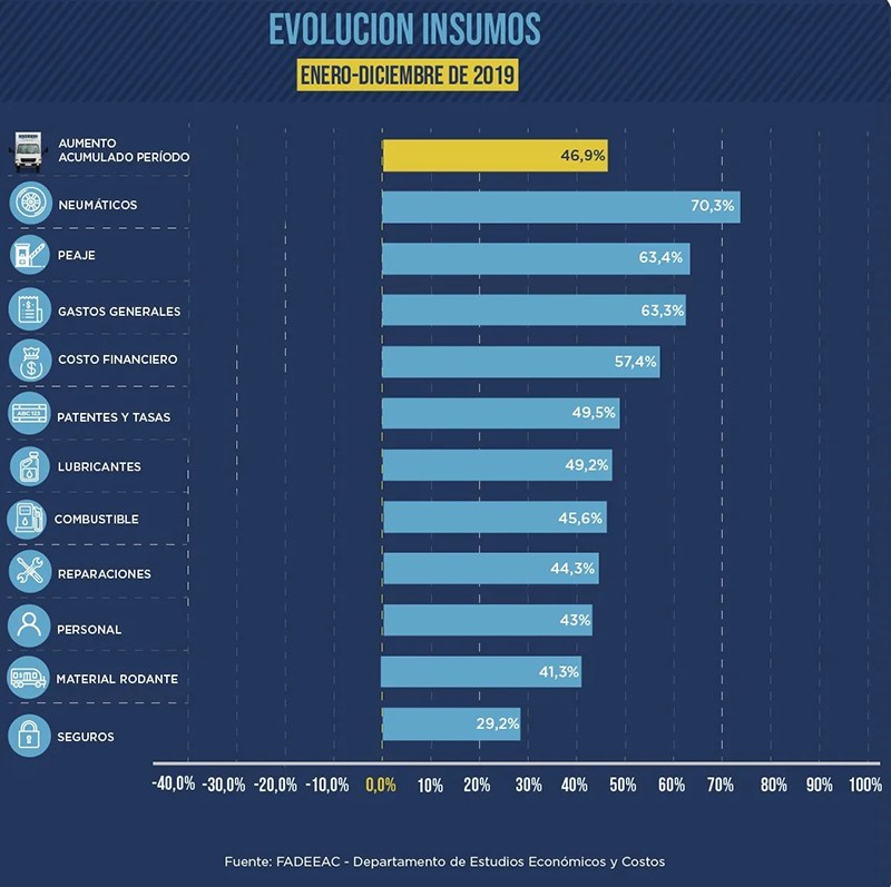 En el costo de los equipos, neumáticos con un aumento de 5,2%, al tiempo que material rodante sube 1,54%. El resto de los rubros (lubricante, seguros, peajes, patentes y tasas), no ha sufrido modificaciones en relación a marzo de 2020.