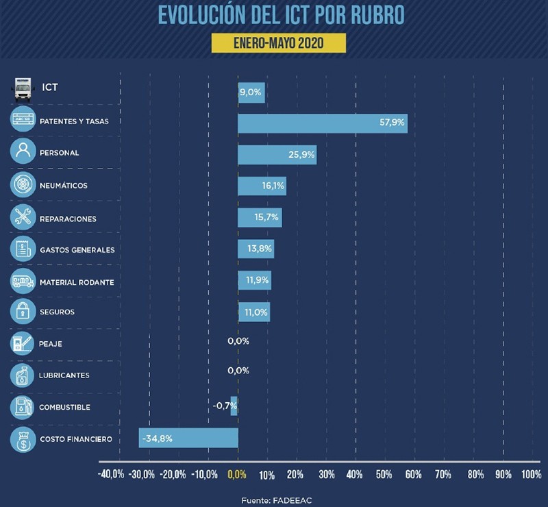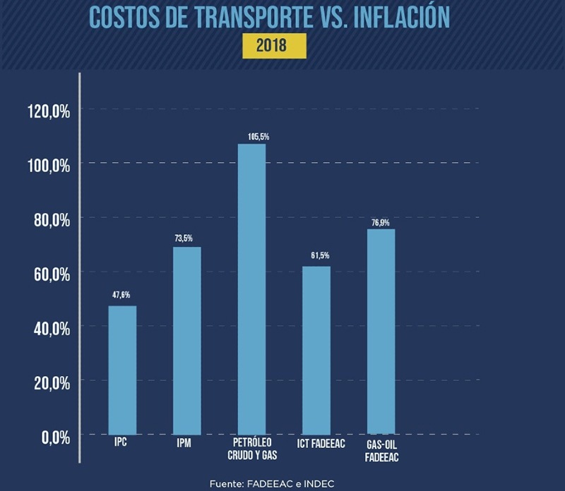 Según un informe del Departamento de Estudios Económicos y Costos de la Federación Argentina de Entidades Empresarias del Autotransporte de Cargas (FADEEAC), se evidencia una desaceleración tanto de los costos del transporte como de la inflación minorista en lo que va del año, en comparación a 2019 y 2018. Mientras en 2018, el Índice de Costos del Transporte FADEEAC (ICTF) tuvo un incremento récord del 61,5%, con el registro más alto desde 2002, en 2019 la inflación fue la más alta desde 1991, con un incremento récord del 53,8%.