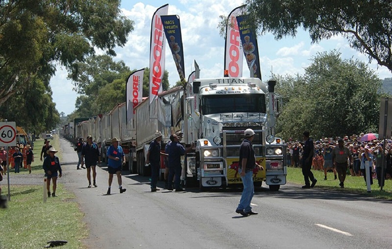 Este camión australiano alcanzó esta longitud conectado a 113 remolques, cargados con un peso total de 1.300 toneladas y avanzó 100 metros transportando esa carga.