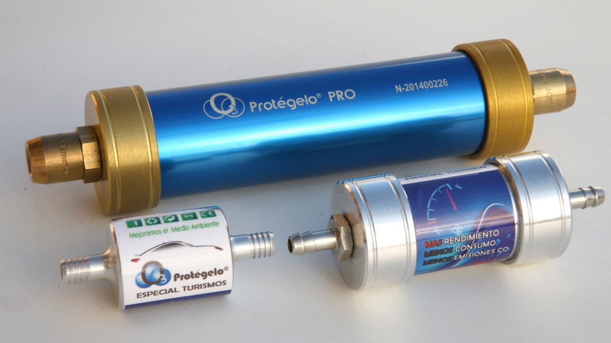 El ‘O3 Protégelo’ es un dispositivo que se instala en los motores; un cilindro de aluminio con conectores de acero inoxidable que en el interior lleva un filtro con un reactivo con minerales naturales de óxido férrico, que consigue evitar el óxido de nitrógeno (NOx) entre el 14% y el 27%, el 50% del carbono (CO) y entre el 50% y el 80% de partículas en suspensión (PM10).