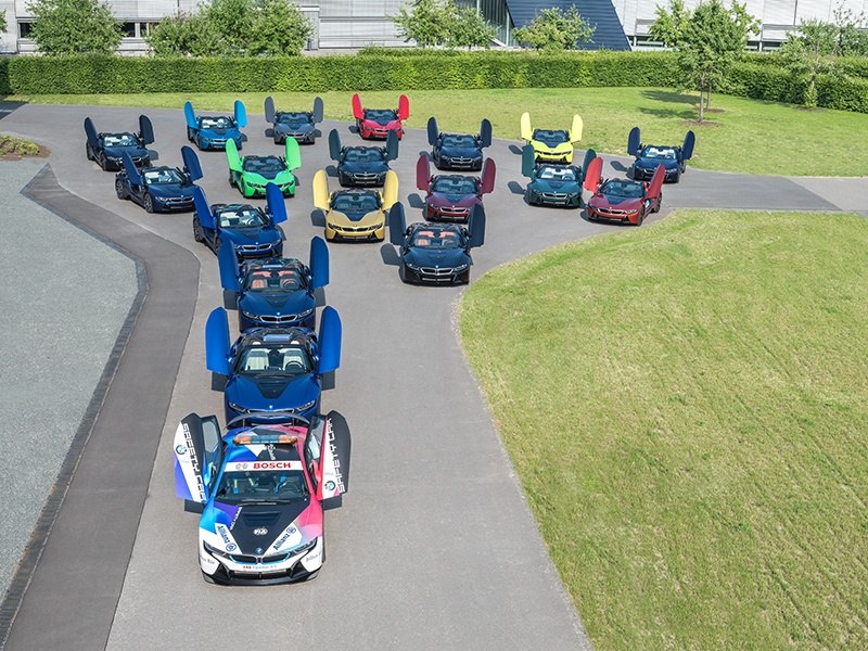 La fabricación de un BMW i8 es en sí misma una hazaña de la manufactura automotriz moderna, debido al concepto del vehículo, la tecnología de manejo y la mezcla única de polímeros reforzados con fibra de carbono (CFRP) y aluminio. Pero los 18 modelos especiales finales presentan desafíos particulares al equipo de producción del BMW i8. En la parte superior: cada uno estaba acabado en un color de pintura que no se había aplicado previamente a los componentes externos de la piel de un BMW i8. Pintar una cantidad tan grande de piezas exteriores en el color especificado hizo que la producción y la logística fueran mucho más complejas. Fabricado y pintado virtualmente a mano por una gama de proveedores y en la planta de BMW Group en Landshut, el desafío consistía en unir los componentes de la línea de producción con la máxima calidad. Y cada parte es el único de este color en existencia y muy complejo de reproducir, Se requirió el máximo cuidado y precisión en logística y en toda la producción de vehículos en serie. Los clientes en la Planta de Leipzig hoy, algunos de los cuales eran miembros del BMW i8 Club International, estaban en el lugar para ver sus vehículos abandonar las puertas de la fábrica y ser entregados al departamento de Logística de Vehículos.