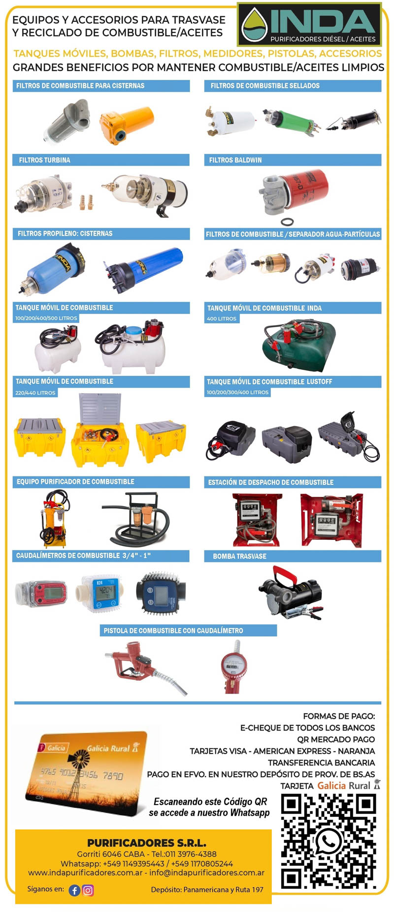 En INDA Purificadores, con nuestra extensa línea de equipos, filtros y accesorios, brindamos la oportunidad de darle solución a la contaminación del combustible.