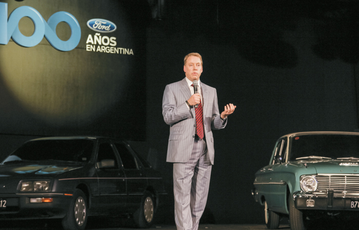 En un evento realizado en el Hotel Hilton de Buenos Aires, Ford recorrió un siglo de innovaciones introducidas por la Marca, las cuales marcaron el pulso de la industria automotriz y de la sociedad argentina. Más de doscientos representantes de los más importantes medios compartieron la celebración junto a destacados ejecutivos de Ford Motor Company, tal es el caso de Mark Fields, COO de Ford Motor Company, Ziad Ojakli, vicepresidente ejecutivo de Asuntos Gubernamentales y Relaciones con la Comunidad y Steven Armstrong, Presidente de Ford Sudamérica.