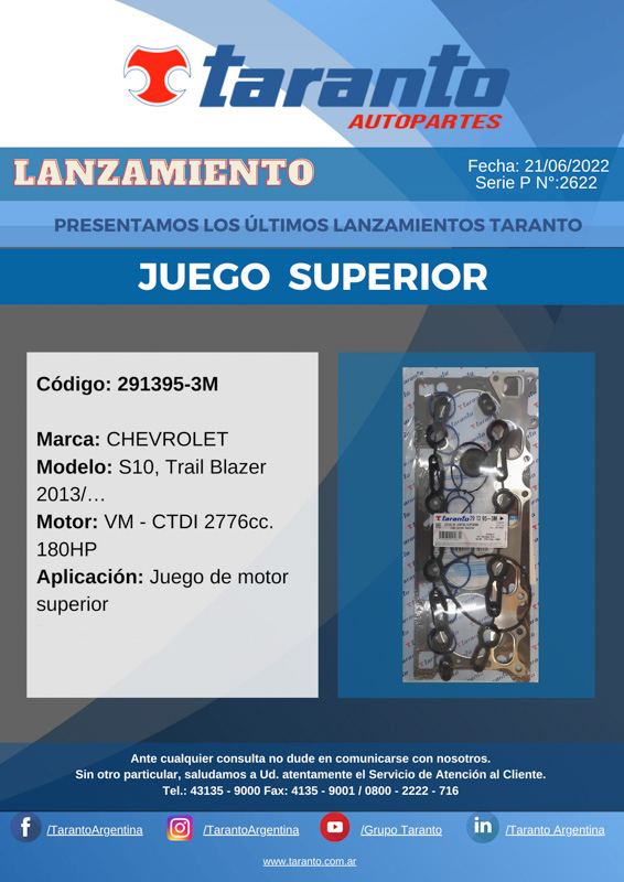 Taranto nuevo lanzamiento: código 291395-3M