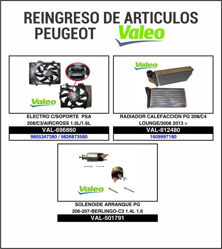 REINGRESO DE ARTÍCULOS PEUGEOT