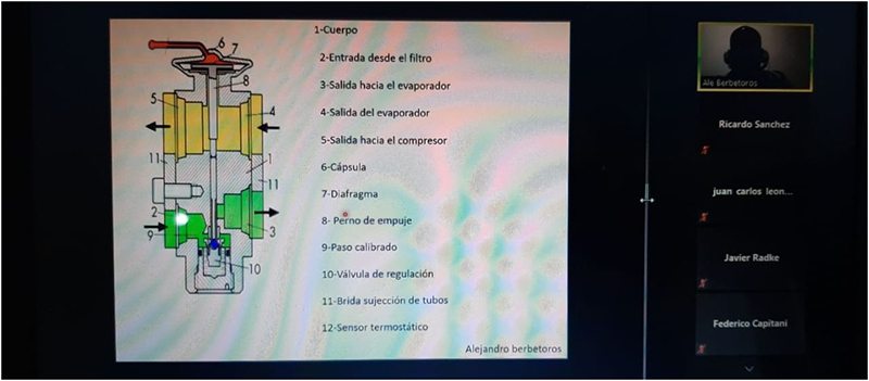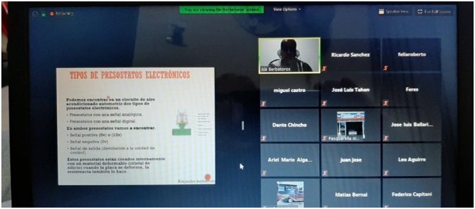 Por el aislamiento social, continuaron los Cursos del Sector Automotriz, en modalidad online. En esta oportunidad fue el del Curso de Aire Acondicionado, con la participación del docente Alejandro Berbetoros y de los asistentes en forma virtual.