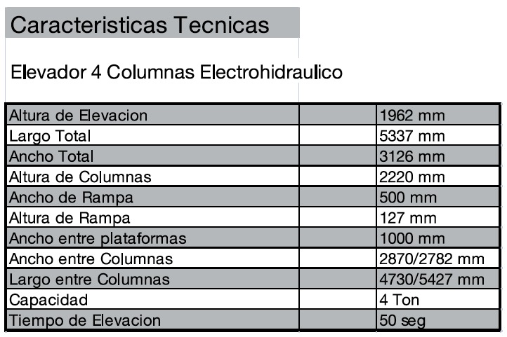 ELEVADOR DE 4 COLUMNAS ELECTROHIDRÁULICO