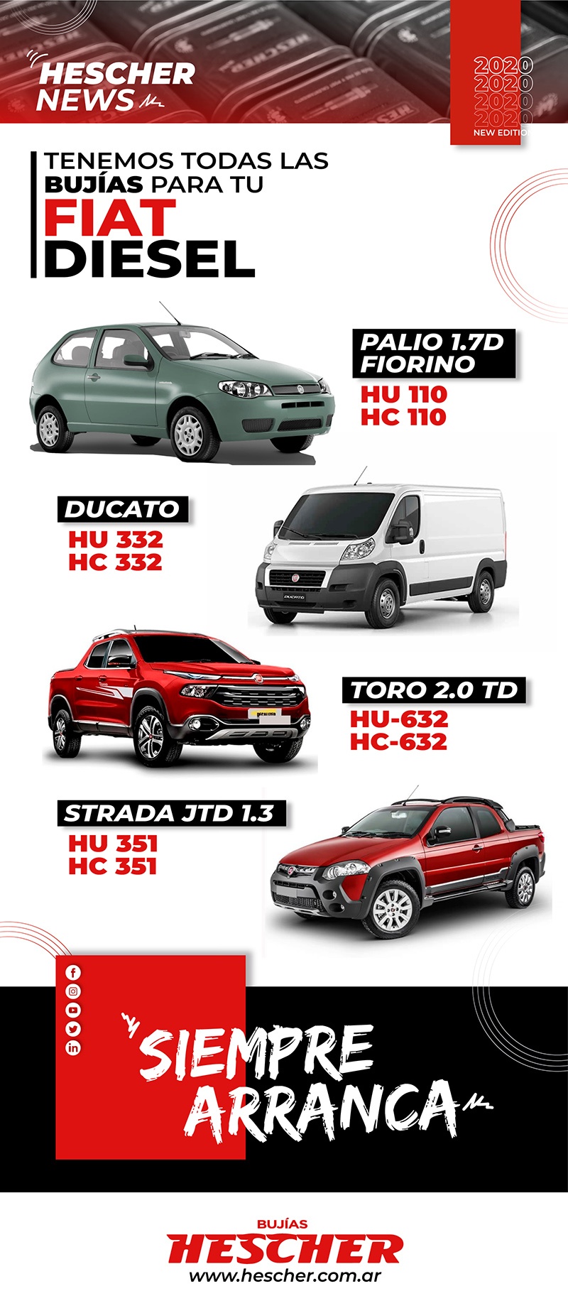 En Hescher contamos con todas las aplicaciones de bujías para cada uno de los modelos de Fiat.