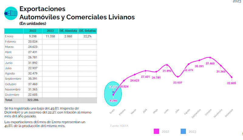 En enero, el sector autopartista realizó exportaciones por 11.358 unidades. Así tuvieron una baja del 49,8% con relación diciembre y un descenso del 22,2% con relación a igual mes del año anterior.