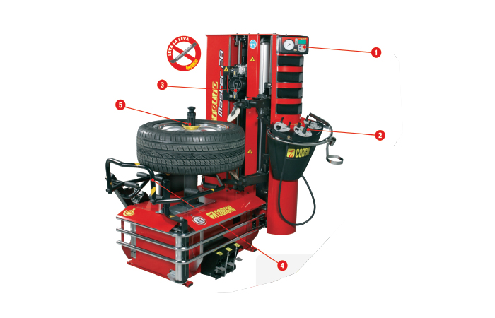 Desmontadora de neumáticos automática con tecnología “Leva la leva” (Sin palanca). El primero y original desde 2001, el único sin contacto con la llanta.