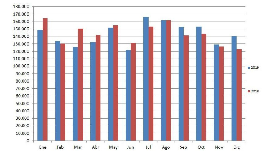 Si los enfrentamos con noviembre de 2019 (128.981 unidades) la suba es del 8,91%.
