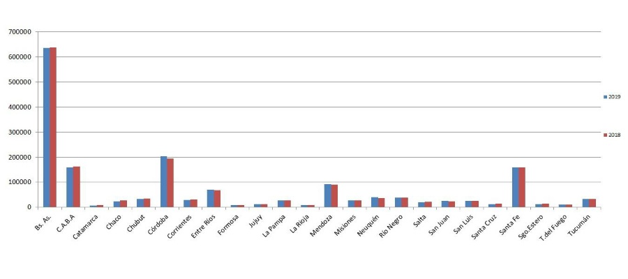 En el período enero-diciembre 2019 se comercializaron 1.717.158 vehículos, una baja apenas del 0,40% comparado con igual período de 2018 con 1.723.998 unidades.
