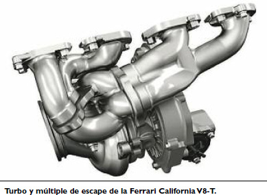 En este caso se trata de la turbosobrealimentación de la Ferrari California V8. Este motor tiene 3.855 cm3 y suministra 550 CV. de potencia efectiva y 755 Nm. de par motor, a 7.500 rpm. y 4.750 rpm.