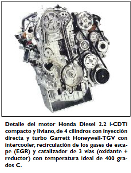 Digamos que la base del desarrollo de los motores Diesel de avanzada, es el propulsor i-CTDi diseñado para el mercado europeo. En el Viejo Continente —por ejemplo— el modelo Accord, es más requerido en su versión Diesel que en su versión de ciclo Otto.