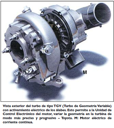 El Sistema "Common rail" piezoeléctrico de Toyota, puede generar una elevada presión de inyección, es decir 1.800 bares, que quizá sea la más alta entre otros sistemas. Este sistema, que sin duda representa un gran desarrollo técnico en los motores que usan la tecnología "Common rail", es un factor determinante para lograr altos valores de potencia y par motor con consumos muy contenidos. El motor adopta también un turbo de geometría variable (TGV) con activación del tipo eléctrico. Esto permite a la central electrónica de control ECU del motor, variar la geometría de la turbina de forma más precisa y progresiva contribuyendo a aumentar la eficiencia.