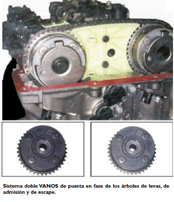 Utilizado en los anteriores motores BMW, el sistema VANOS controla la puesta en fase de los árboles de levas, y por lo tanto el reglaje de la apertura y cierre de las válvulas de admisión y escape. Este sistema consiste en un par de discos posicionados entre el extremo de los árboles de levas y sus engranajes de accionamiento, que tienen el movimiento desde la cadena de distribución.