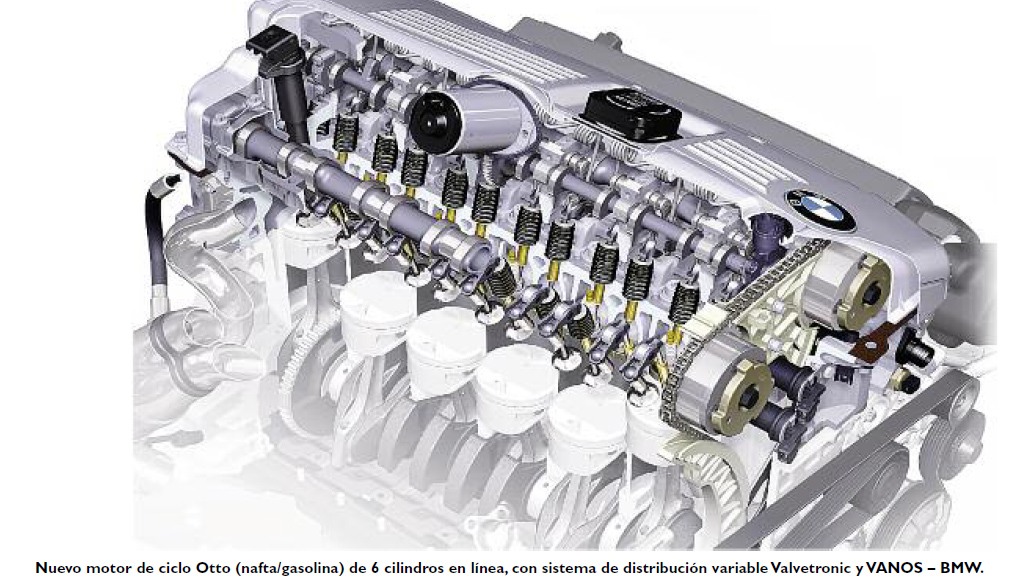En relación al moderno propulsor BMW de 6 cilindros en línea, consideraremos el sistema VANOS de desfasaje variable de los árboles de levas.