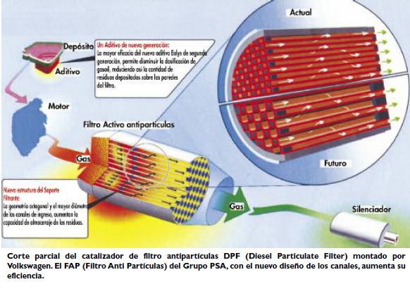 Si hace algunos años se utilizaba el sistema turbo Diesel “Common rail”, en la actualidad se hace necesario el uso de un FAP (Filtro Antipartículas) o de un DPF (Diesel Particulate Filter). En poco más de diez años, los valores contaminantes del hollín o del carbono particulado han sido reducidos unas seis veces.