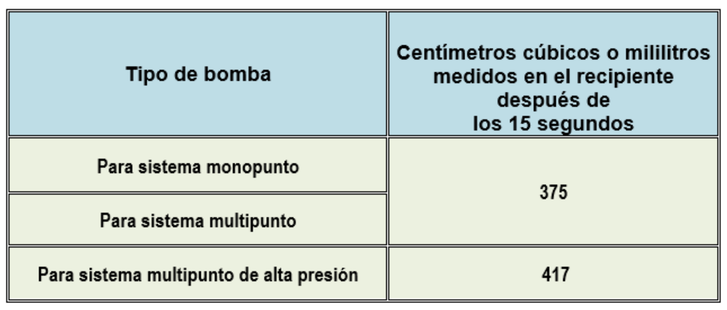 Tabla 2 - Caudal mínimo que deben entregar las bombas de combustible eléctricas