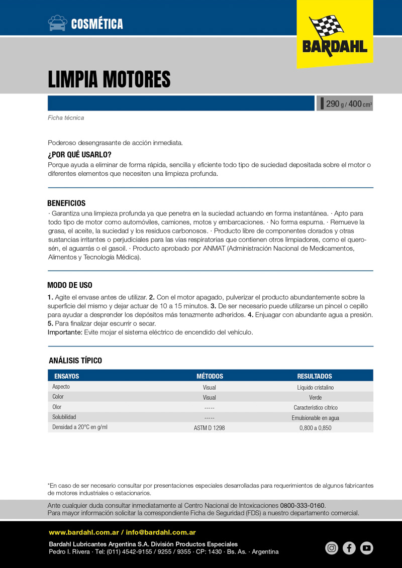 Para conocer más de nuestros productos ingresá a TIENDA.BARDAHL.COM.AR
