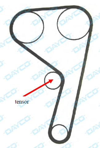Instale la nueva correa de distribución en sentido contrario a las agujas del reloj, empezando por el piñón del cigüeñal.