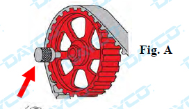 • Introduzca el perno de puesta en fase (Fig. B), verificando que el brazo del cigüeñal apoye contra el mismo perno.