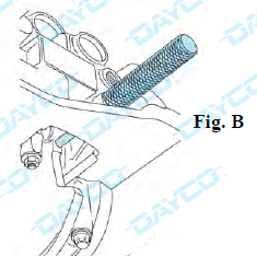• Introduzcan el perno de puesta en fase y averigüen que el motor se encuentre en posición de puesta en fase: el brazo del cigüeñal debe apoyar contra el perno de puesta en fase (Fig. B).