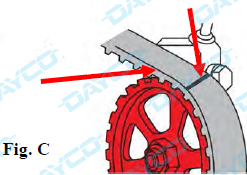 • Verifiquen que la referencia del piñón de la bomba alta presión se halle en correspondencia con la cabeza del tornillo. (Fig. C).