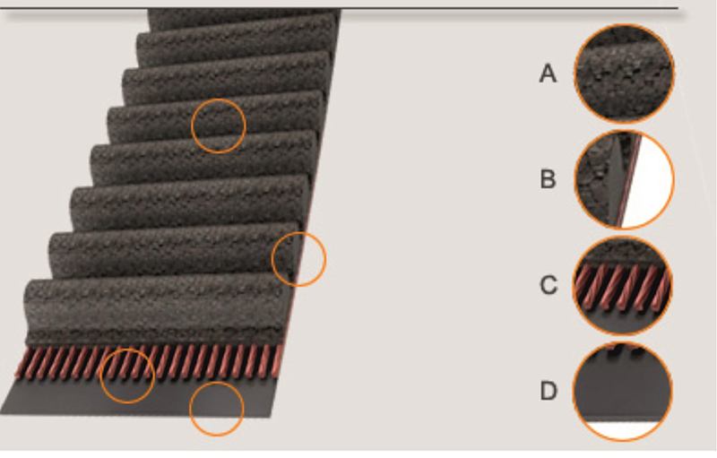 Correas de distribución para árboles de levas, árboles de compensación, bombas de inyección o bombas de agua.