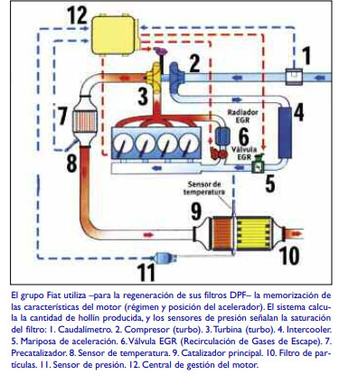 Conocemos respecto al elevado rendimiento del motor de ciclo Diesel, en donde prevalece la limitación del consumo, y la disminución de las emisiones de monóxido de carbono (CO2). El importante "par motor", del que ya se dispone en bajos regímenes, hace del propulsor gasolero, en especial del turboDiesel, un medio agradable a la conducción. Cabe agregar que las emisiones del escape poseen altos valores de carbono particulado (hollín), y de óxidos de nitrógeno, y que las mismas pueden ser reducidas considerablemente mediante dispositivos o sistemas bastante complejos y caros. Este es el caso de los filtros antipartículas(FAP) y de los catalizadores, por ejemplo, como el DeNox.