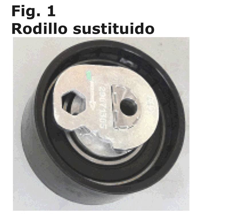 El nuevo rodillo tensor tiene una placa distinta con marca para el ajuste.