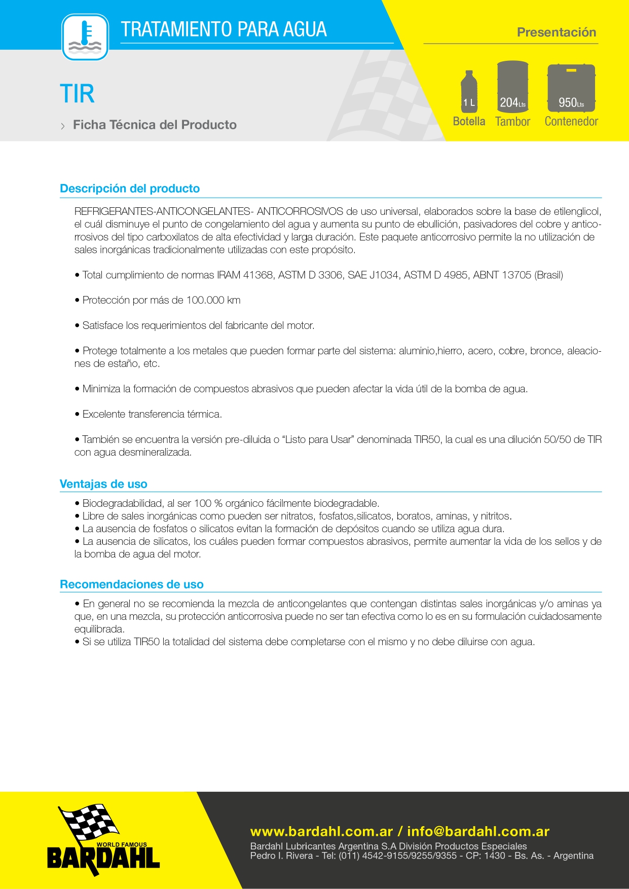 Más información: www.bardahl.com.ar